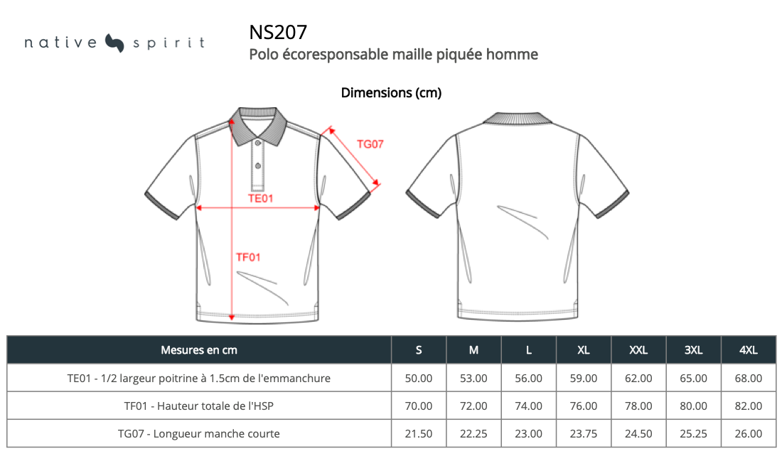 Polo écoresponsable maille piquée - Hommes - NS207 - Broderie