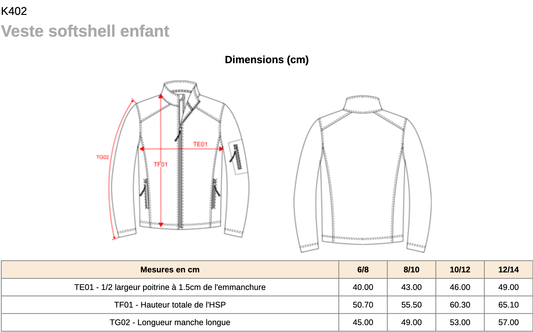 ⚠️ TABLEAU DE DIMENSIONS EN BAS DE PAGE