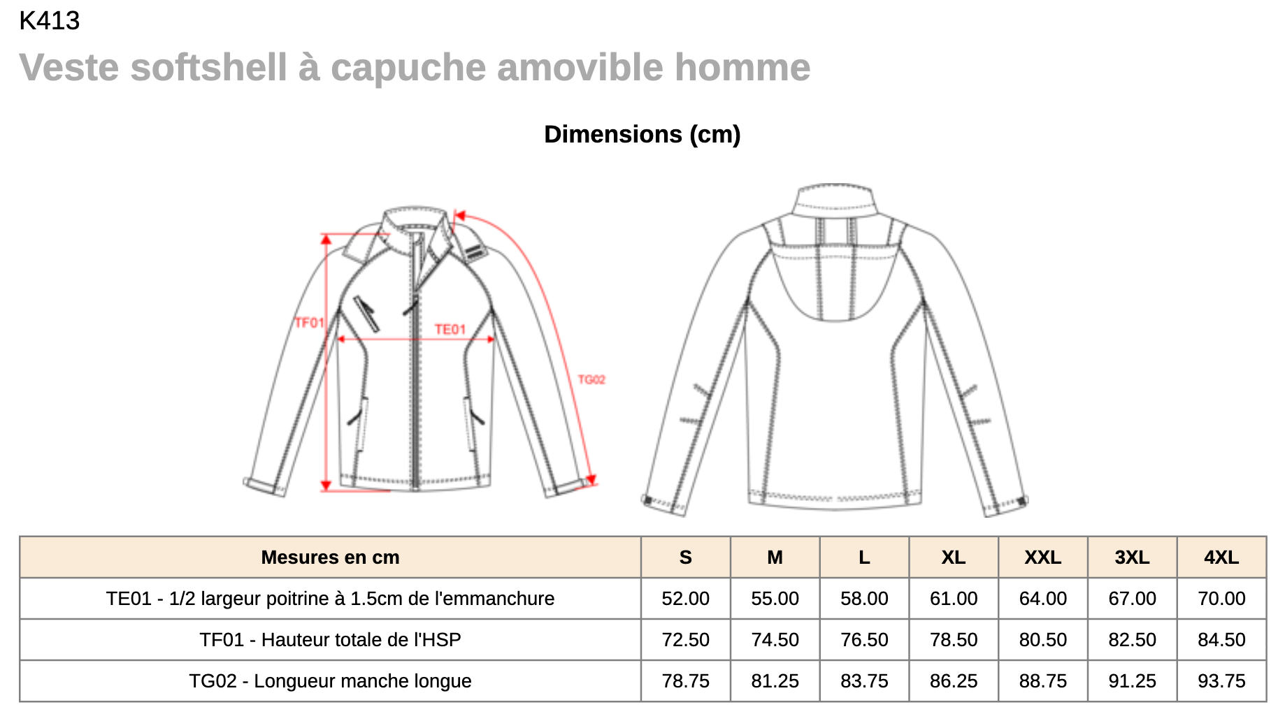 Choississez la taille de votre équipement en fonction de votre morphologie.