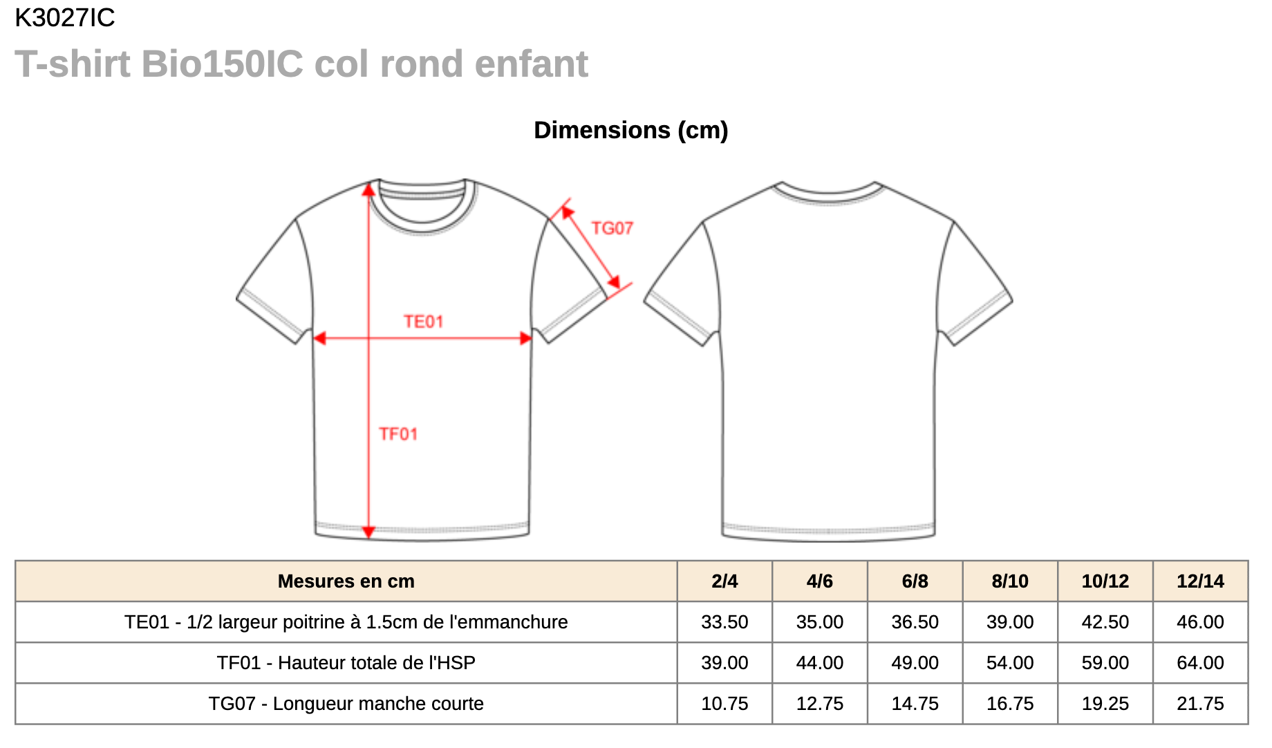 ⚠️ TABLEAU DE DIMENSIONS EN BAS DE PAGE