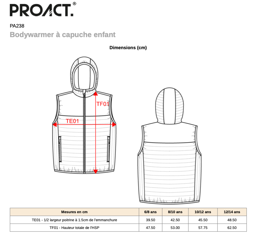 Choississez la taille de votre équipement en fonction de votre morphologie.
