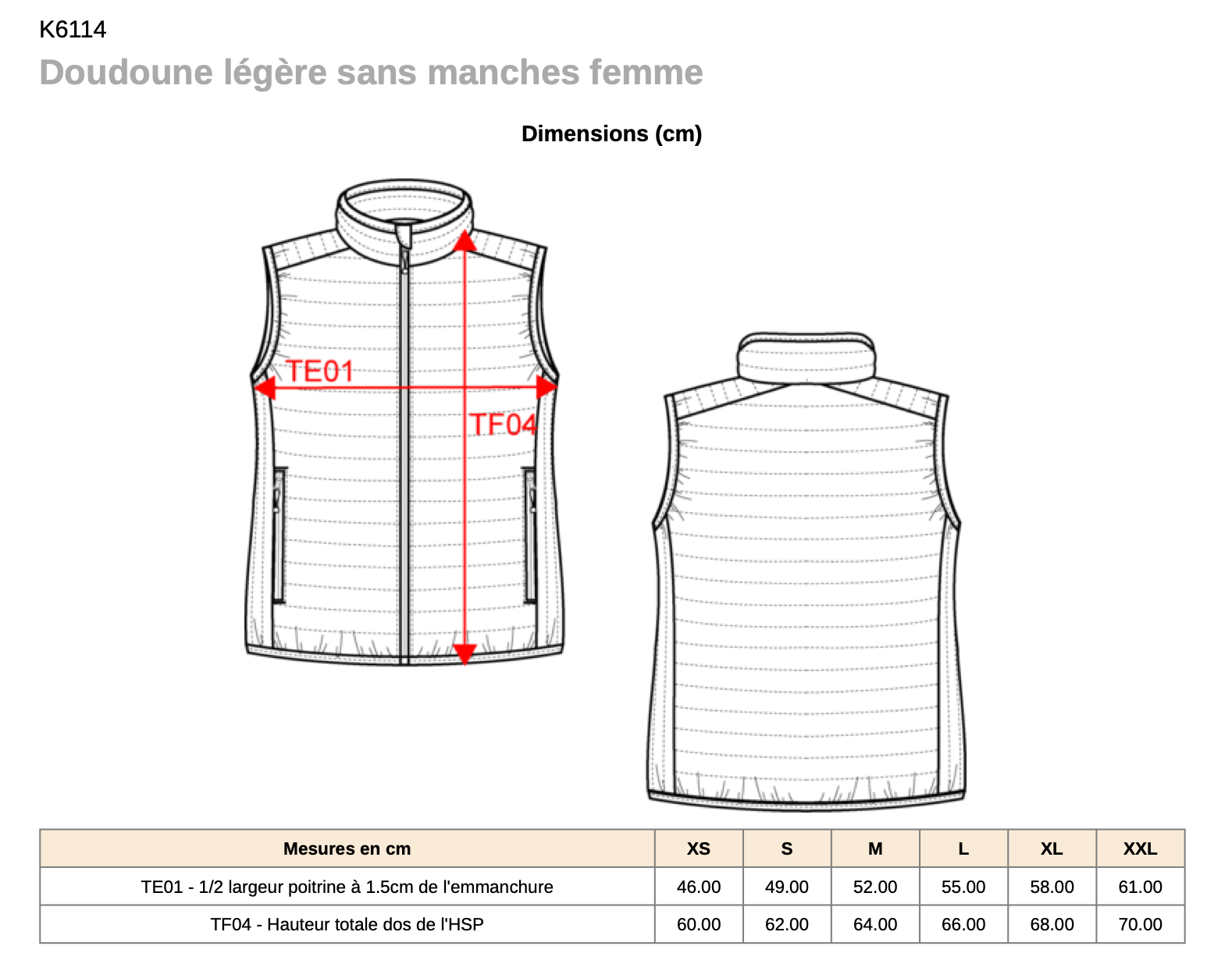 Doudoune légère sans manches - Femmes Trilux - Broderie - (K6114)