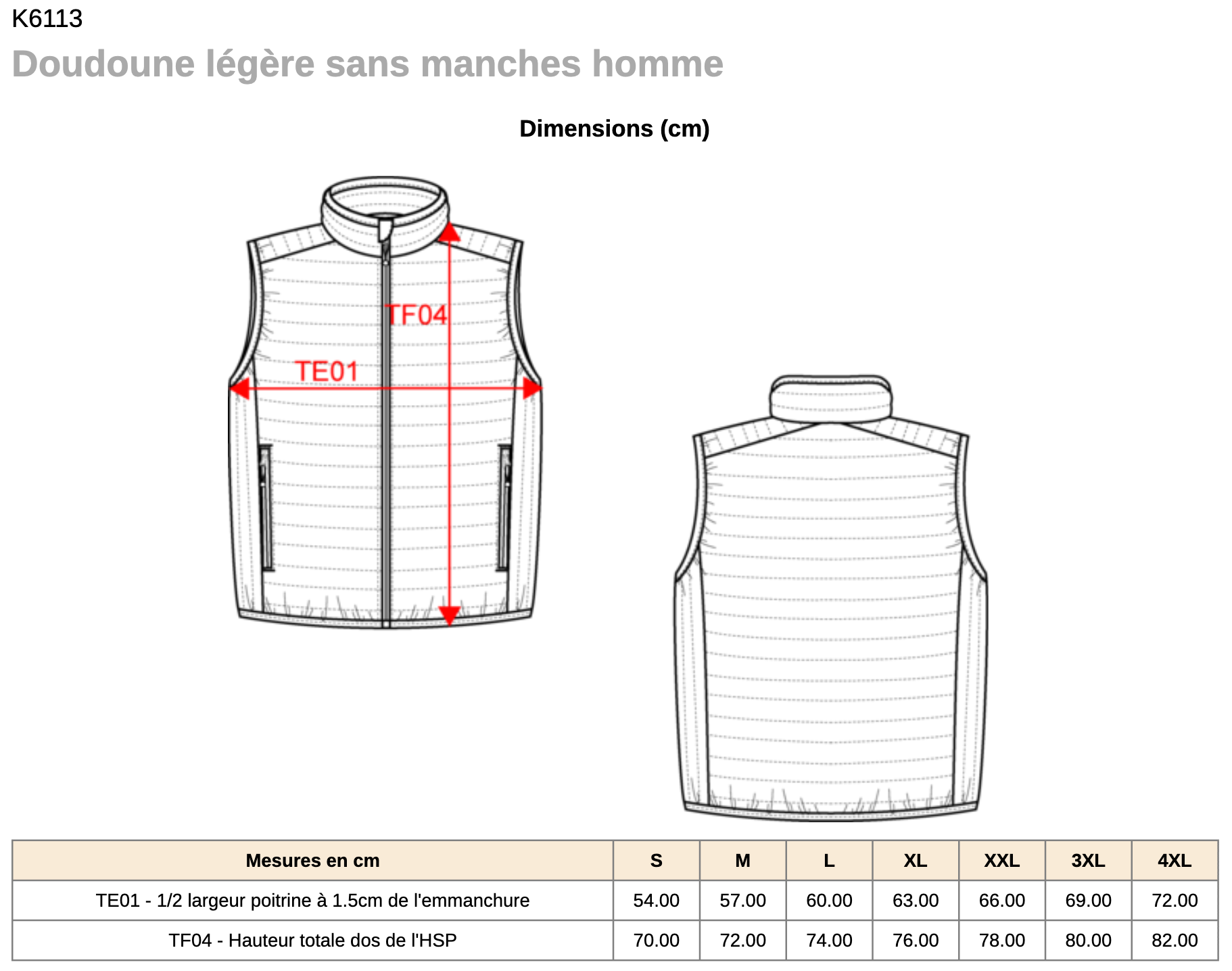 Gilet doudoune Adultes- DTFB (K6113-Broderie)