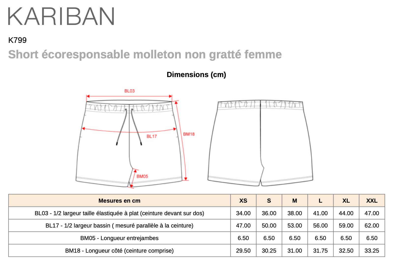 Short écoresponsable molleton non gratté -Femmes- Megitsune (K799)
