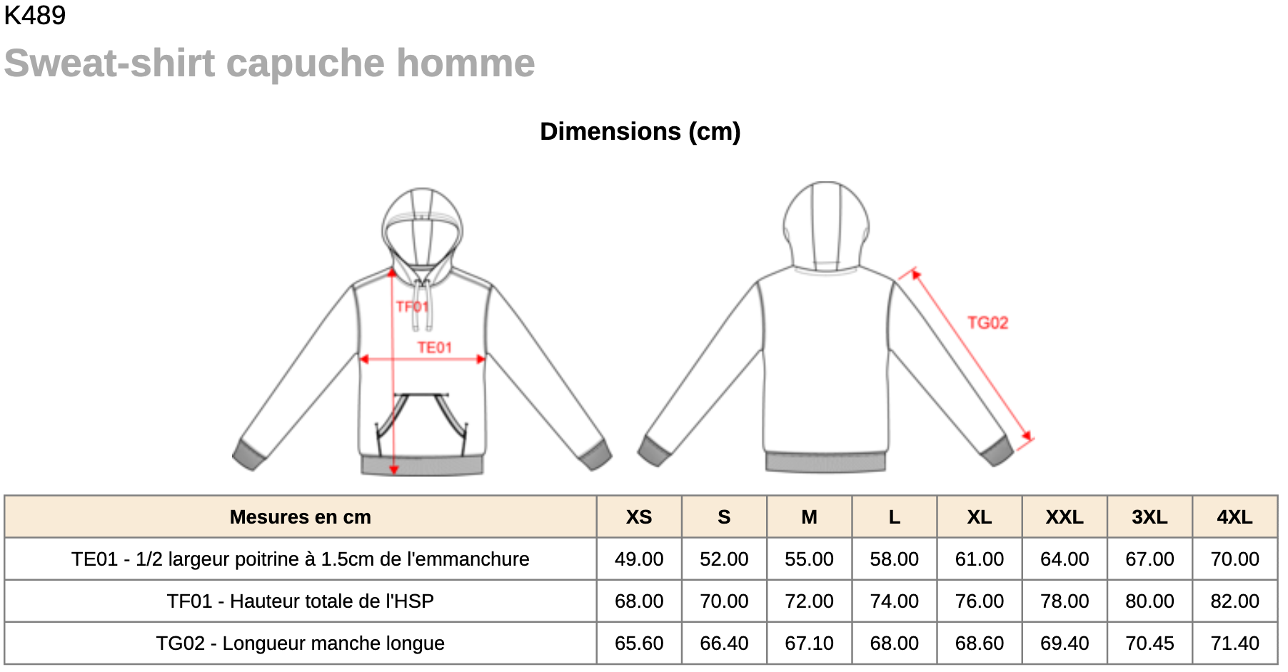⚠️ TABLEAU DE DIMENSIONS EN BAS DE PAGE