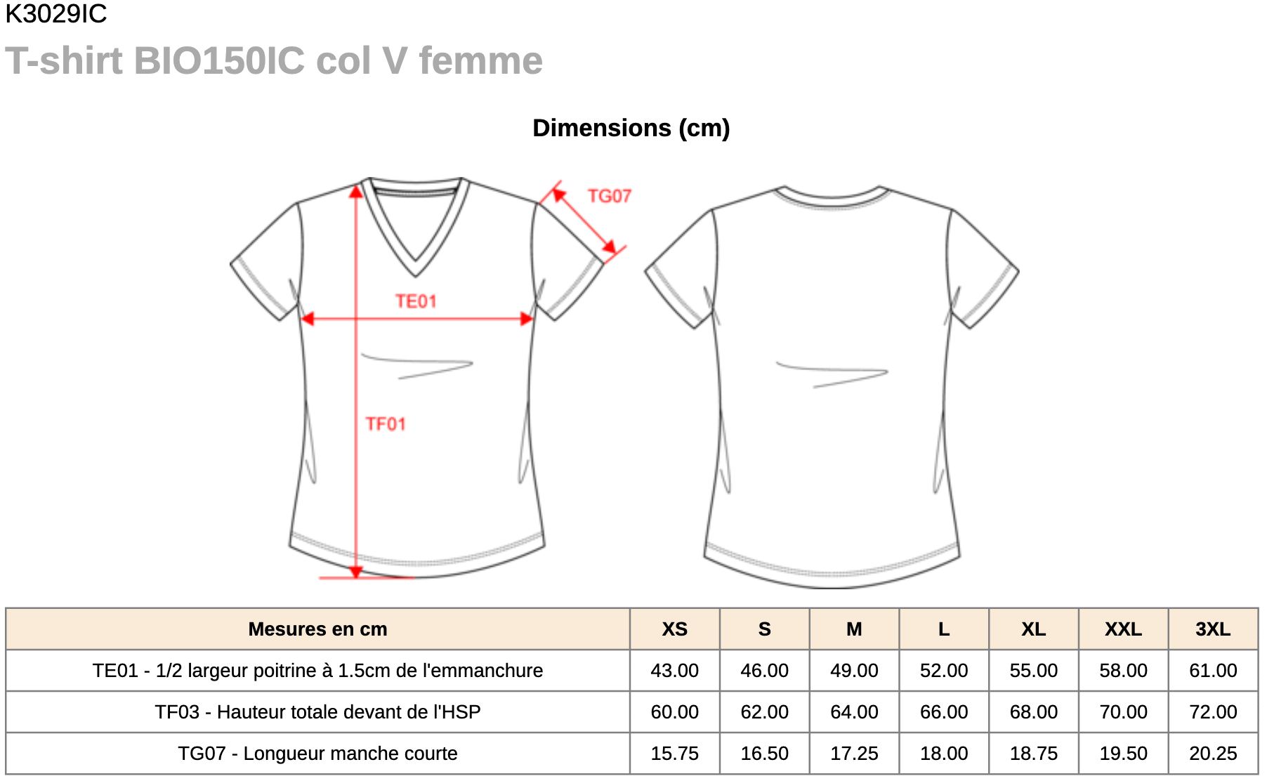 T-Shirt "Col V" Bio Version_3 - Femmes - Ehnen Beach (K3029IC)