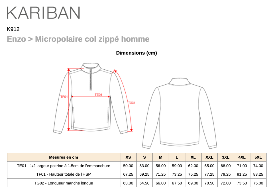 Choississez la taille de votre équipement en fonction de votre morphologie.